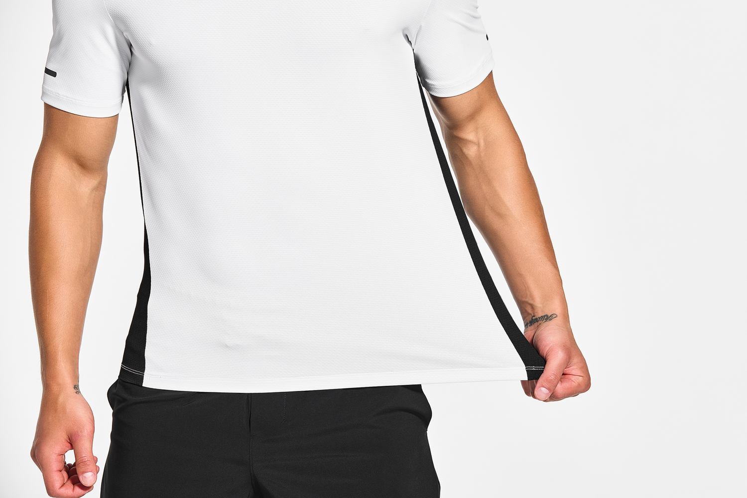 Moisture Management Featuring sweat-wicking technology, our shirts efficiently draw moisture away from the body, keeping you dry and comfortable throughout your workout, whether you're at the gym, on the court, or in the pool.